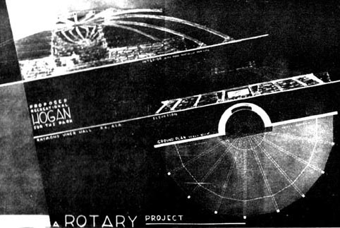 | The Hogan (a shelter for the park) was a development of the historical Navaho pole and clay structure. The appropriate form was executed with rough lumber and native stone. The rigors of climate, vandalism, and poor maintenance (reflecting a disinterested citizenry) led to dismantling of the super-structure. The Port Allegany Community Park (around 1930) was initially conceived, planned, financed, and built by members of the Rotary Club with widespread assistance from citizens of the area. Its physical development from a rustic picnic ground to the present educational and recreational complex included, among many other features, the structures designed by Raymond Viner Hall. |
